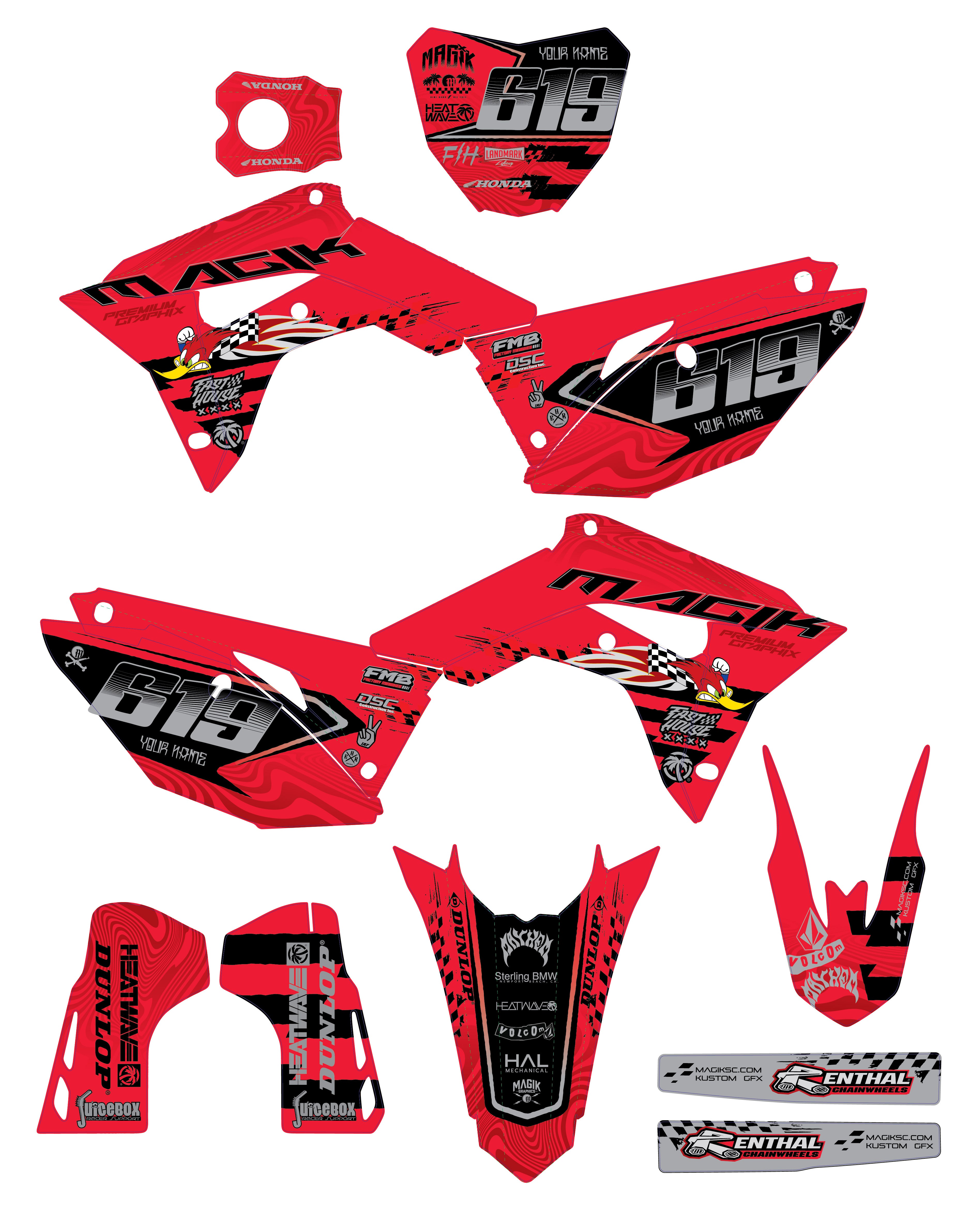 Our Full Graphic Kits are printed on high tac motocross material to ensure appearance and performance. Our Adhesive Has Special Air Release Technology Resulting in Fewer Trapped Air Bubbles and Easier Application